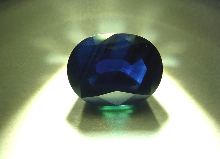 オーストラリア産サファイアは歴史的にもほとんどのものがタイに送られ、「色調の改善」や「透明度の向上」のために加熱処理が施されています。オーストラリア産のブルー・サファイアは色調が濃いだけでなく、多くは曇った外観の原因となるクラウド状の微小包有物を多数内包しています。サファイアは一軸性の結晶で、結晶に入った光は複屈折を示します。その際、通常光(ω)はブルー、異常光(ε)はグリーンイシュブルーの多色性を示します。そのためブルー・サファイアは、理想的には美しいブルーが得られるように光軸に垂直にテーブル面が取られます。しかし、微小包有物が光を散乱させると、どの方向にオリエンテーションを取っても、ブルーにグリーンが混じった好ましくない色調になってしまいます。そのため、ほとんどのオーストラリア産のブルー・サファイアは透明度を向上させるために還元雰囲気で加熱されます。グリーン、イエロー、パーティカラーなどは非加熱のものもありますが、しばしば色調の改善のために酸化雰囲気で加熱されたり、透明度の改善のために還元雰囲気で加熱されたりしています。また、グリーンやブルーが混じったような不均一なイエローの石は、テリのある均一なイエローにするためにBeを用いた拡散加熱処理が施されることがあります。