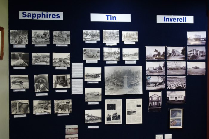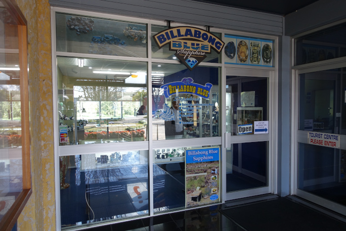 インベレルの中心地、キャンベル通り沿いの中央ビジネス地区近くにインベレル観光案内所(visitor information center)があります(写真-39)。ここでは地元や地域の地図やパンフレットに加え、宝石や鉱物のコレクションも展示されています(写真-40)。特に「サファイア・シティ」と呼ばれるだけあって(写真-41)、インベレル/グレンイネス地域のサファイア採掘の歴史に関する資料(写真-42)(写真-43)や標本石(写真-44)(写真-45)が多数展示されており、この地域のサファイアに関する知識を得ることができます。また、この地域で採掘されたサファイアのルース(写真-46)やアクセサリーも販売されています。その他、レストランや無料の給水施設、大型車の駐車施設もあり、インベレル訪問の際に最初に立ち寄りたい場所です。